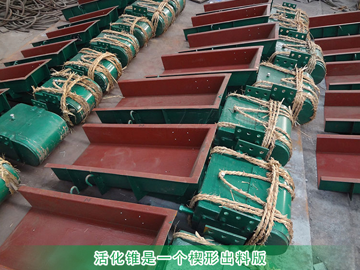 活化錐是一個楔形出料版,小頭向上,固定在共振體上,由于激振器產生的激振力的作用,活化錐在振動方向上和共振體一起作近似于簡諧振動。通過活化錐產生向上的力,將水平振動高效地傳遞到頂部物料,振動力所產生的擾動能量松動物料使其下落。
