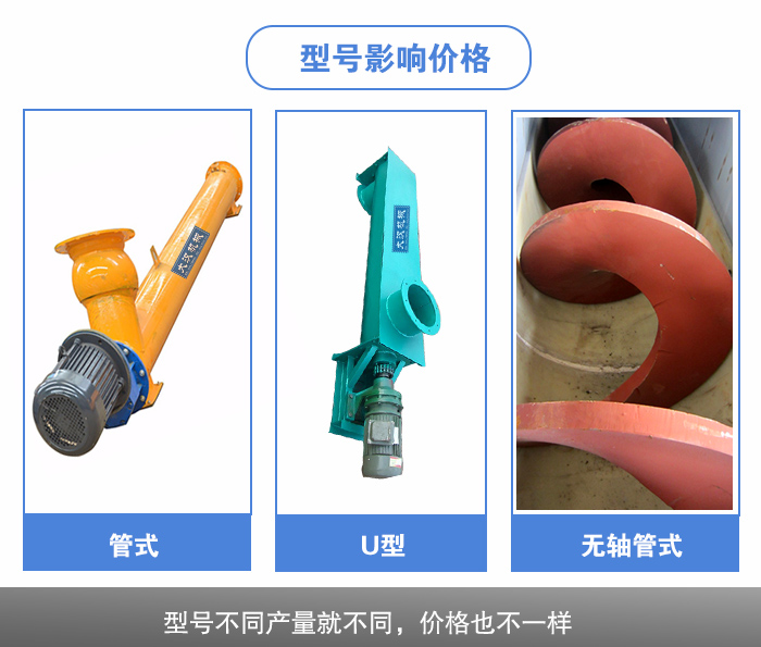管式螺旋給料機(jī)分為管式、U型及無(wú)軸管式螺旋給料機(jī)等三種類(lèi)型,不同類(lèi)型的輸送機(jī)有不同的型號(hào),這些都會(huì)影響管式螺旋給料機(jī)的價(jià)格,同一類(lèi)型,型號(hào)越大的管式螺旋給料機(jī)產(chǎn)量就大,設(shè)備的價(jià)格越大,產(chǎn)量越小,價(jià)格就相對(duì)低一些。