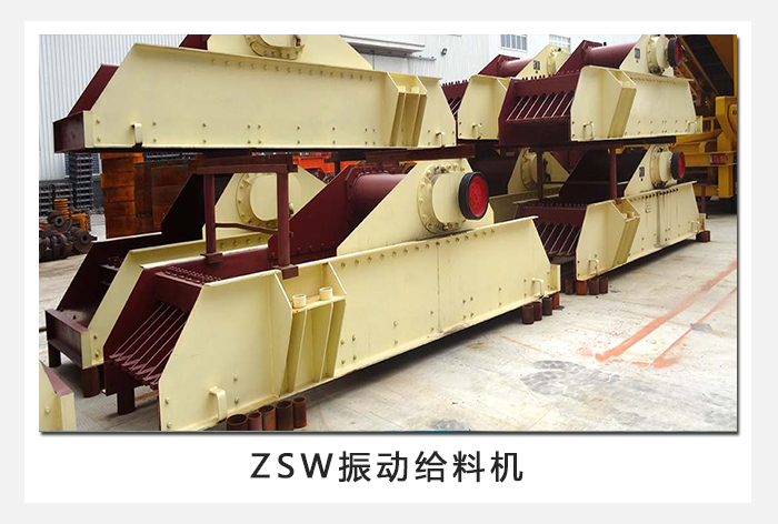ZSW系列振動給料機主要用于粗碎破碎機前連續(xù)、均勻給料,同時可篩分細料,使破碎機能力增大。該機采用雙偏心軸激振器的結構特點,使設備能夠承受住大塊物料下落的沖擊,給料能力大。在生產流程中可以把塊狀、顆粒狀物料從貯料倉中均勻、定時、連續(xù)地送到受料裝置中去,從而防止受料裝置因進料不均而產生死機的現象,延長了設備使用壽命。可分為鋼板結構和篦條結構兩種,鋼板結構的給料機多用于砂石料生產線,將物料全部均勻地送入破碎設備;篦條結構的給料機可對物料進行粗篩分,使系統在配制上更經濟合理,在破碎篩分中已作為必不可少的設備。