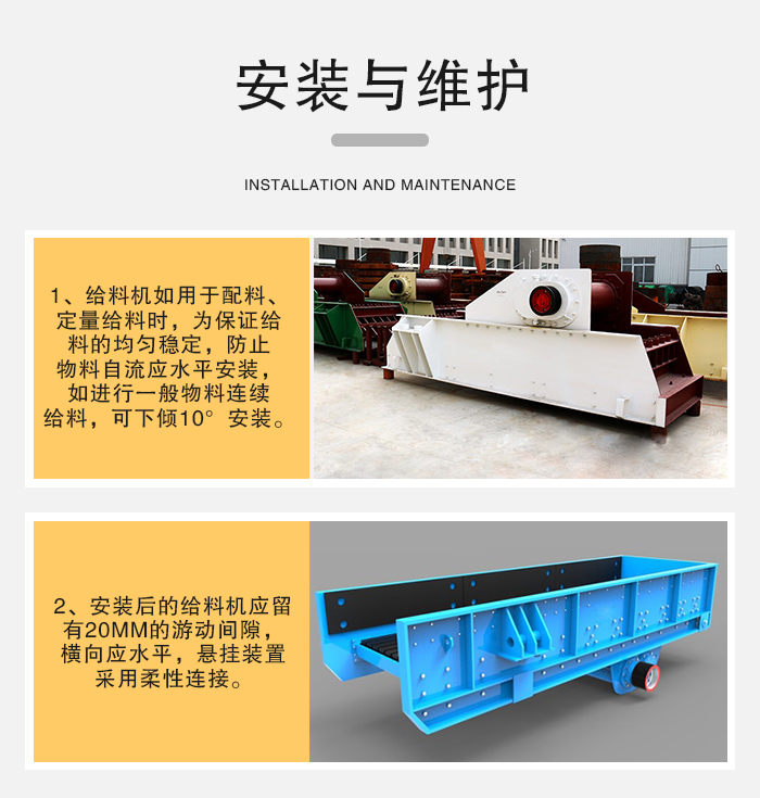 b、安裝后的給料機應(yīng)留有20mm的游動間隙,橫向應(yīng)水平,懸掛裝置采用柔性連接。